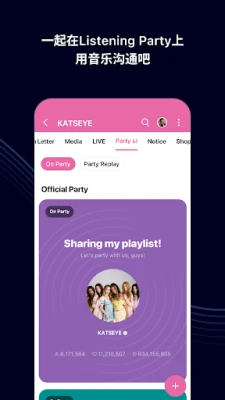 通过Weverse LIVE,沉浸式体验艺人带来的实时直播盛宴。在跳动的画面中,您可以即时发送聊天,用指尖的点赞传递无限支持与喜爱。更独特的是,Weverse开创性的Listening Party,让音乐不再是单向聆听。无论是艺人亲自主持的官方派对,还是粉丝间自发组织的专属聚会,您都能与全球同好和艺人一同沉浸在音乐的海洋中,实时互动,共同创造每一个与旋律交织的难忘时刻。