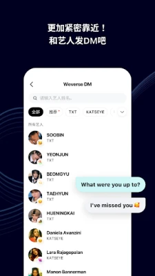 渴望与艺人建立更私密的联系?Weverse DM提供一对一的专属聊天体验,通过订阅,您的心声可以直接抵达艺人。此外,Weverse Shop汇聚了艺人官方商品与最新专辑,方便您一站式选购并追踪订单。用Weverse的粉丝信功能,亲手制作并传递您的专属心意,多样化的模板与装饰选项让您的情感表达独一无二。参与丰富的粉丝活动,收集独有的徽章和Collectible,构建您的专属追星纪念册。更有Weverse独家视频内容,搭配多语言字幕,以及仅对官方Membership开放的专属内容与特权,全方位满足您的追星需求,让每一次追随都充满意义。